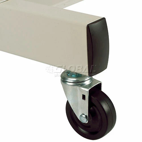 Easily fits through doorways for computer portability. Includes steel post and base with beige laminate work surface. 27″W x 20″D work surface is 1″ thick and easily mounts at various heights. Durable 2″ x 5″ center post includes built-in cable management openings. Cart moves easily on 24″W x 24-1/2″D caster base. Base features a 10″D shelf and 4″ rubber casters (2 locking). 41″ height overall. Beige powder coat finish. This cart has a total weight capacity of 250 pounds. Easy assembly.