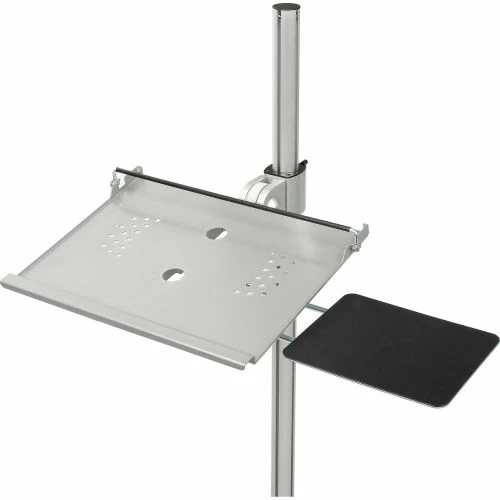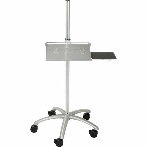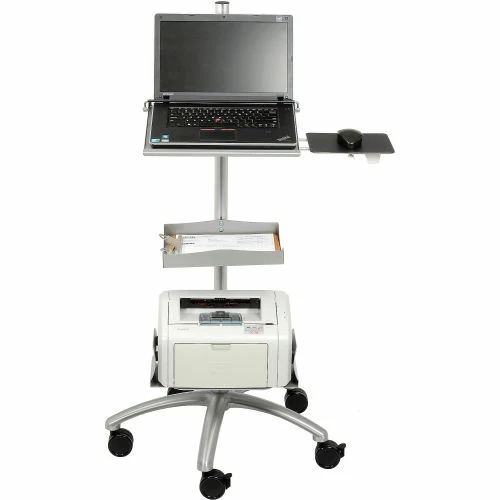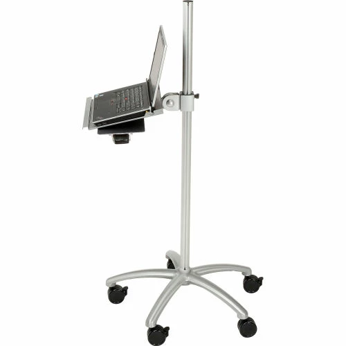 The Laptop Workstation platform measures 15-1/2″W x 11-3/8″D and is made of steel affixed to a lightweight and durable aluminum post. Center post of unit measures 1.57″ diameter. Laptop tray fits typical laptops up to 15″ screens. Mobile Laptop Workstation glides smoothly on five 2.5″ swiveling casters (3 locking). Optional Paper Tray, Printer Shelf, and CPU Holder are available and sold separately. Easy assembly.