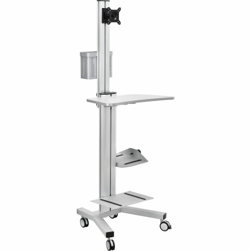 Global Industrial™ Mobile Height Adjustable Desktop Computer Workstation with 4-Outlet Power Strip