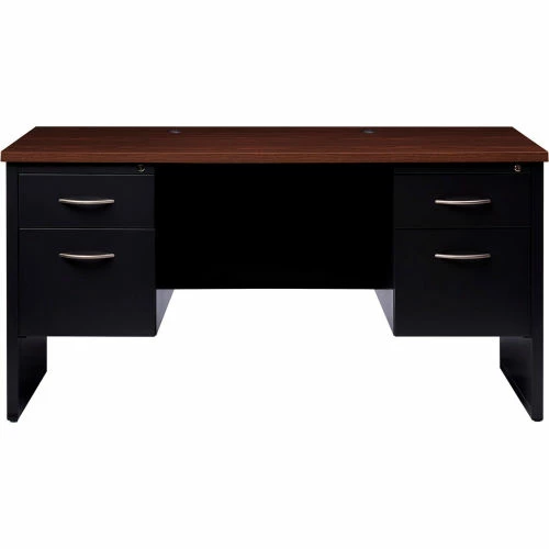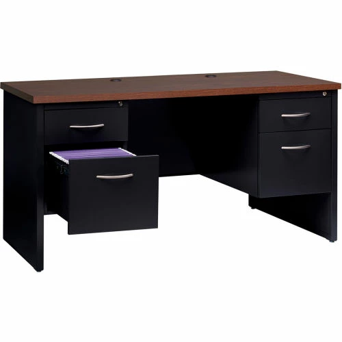 Hirsh Industries® Modular Steel Credenza – Double Pedestal – 60 x 24 – Black/Walnut