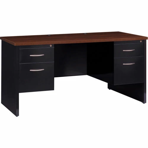 Hirsh Industries® Modular Steel Desk – Double Pedestal – 60 x 30 – Black/Walnut