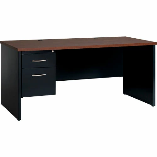 Hirsh Industries® Modular Steel Desk – Single Left Pedestal – 66 x 30 – Black/Walnut