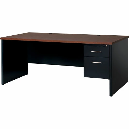 Hirsh Industries® Modular Steel Desk – Single Right Pedestal – 72 x 36 – Black/Walnut