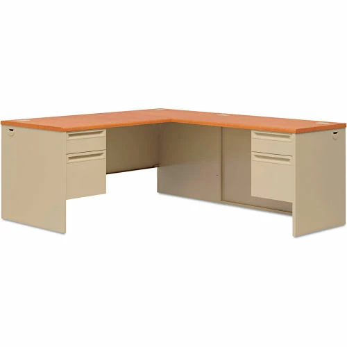 HON® Left Pedestal Desk – 66"W x 30"D x 29-1/2"H – Harvest/Putty – 38000 Series