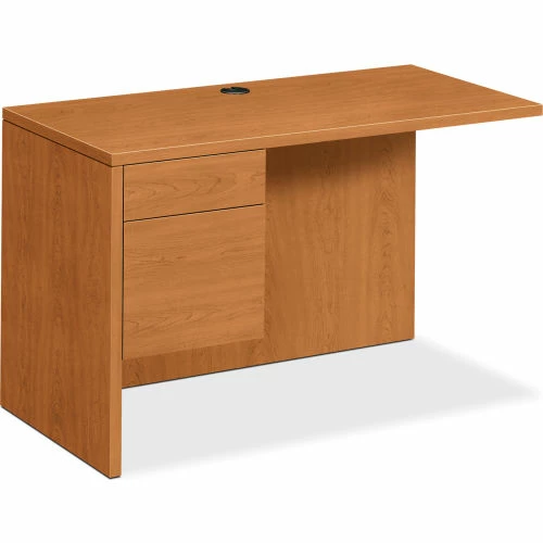 Combine with a single pedestal desk, desk shell, peninsula or corner unit to create an attractive workstation. This return is not designed to be freestanding, but it is designed to maximize space and elevate the aesthetic of any environment. Hard-working, good-looking and built to survive a lifetime of overtime. Durable laminate finish helps reduce scratches. Full-height modesty panel for privacy. HON One Key core removable lock. Convenient cord management grommets.