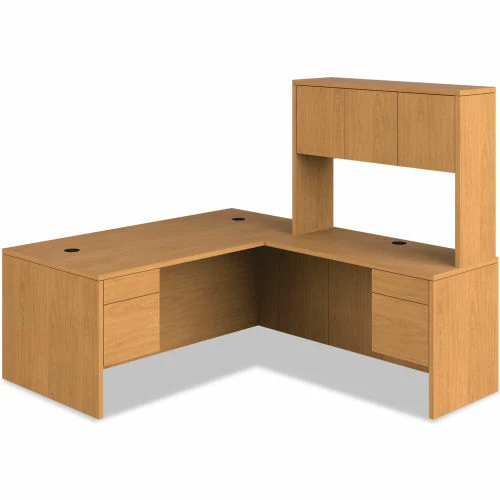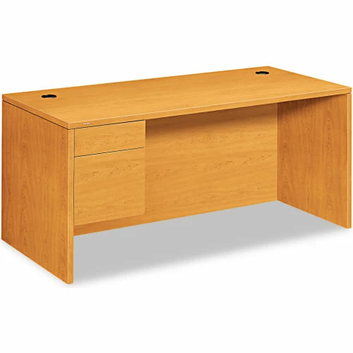 Hard-working, good-looking and built to survive a lifetime of overtime. Durable abrasion- and stain- resistant laminate. Drawers operate on ball bearing suspensions; file drawer extends fully and accommodates letter or legal size hanging files, box drawer extends three-quarters. HON® “One Key” core removable locks make re-keying quick and easy. Full-height modesty panel for privacy. Two cord management grommets. Desk and Return sold and shipped separately–ORDER BOTH.