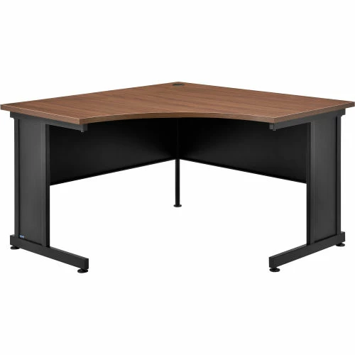Interion® By Global Industrial Office partition furniture helps optimize your partitioned work space, while adding functionality and storage. These modular components are made with 1 thick scratch resistant laminate work surfaces on charcoal finished steel frame. Corner desk has a curved front that is ideal for comfort in corner placement applications. Desktop includes 2-3/16″ diameter cable management grommet opening. Desk includes modesty panel and adjustable leveling glides. Purchase with Optional Return Desks to create L & U-shaped workstation. Easy assembly. 1 Year Limited Warranty.