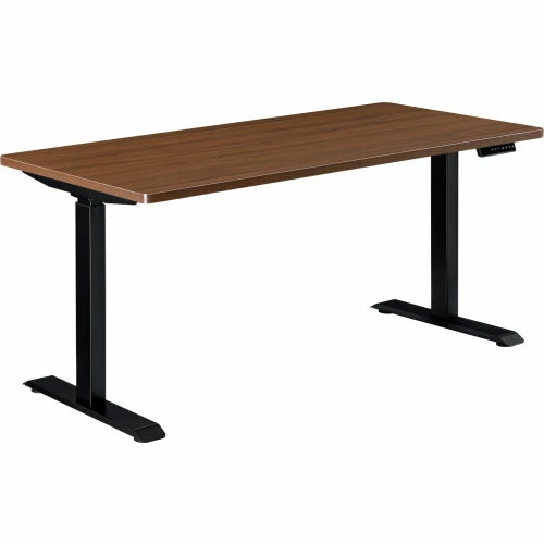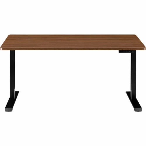 Interion By Global Industrial Interion® Electric Height Adjustable Desk, 60"W x 30"D, Walnut W/ Black Base