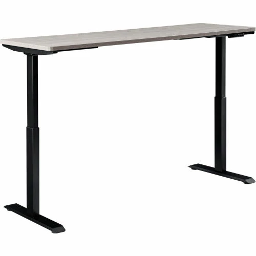 Interion® By Global Industrial Sit and Stand Desks provide ergonomic benefits and productivity while mitigating health issues associated with prolonged sitting. The function of height adjustability allows you to work comfortably at various heights with the touch of a button. The easy-touch buttons effortlessly moves the table top to your desired height. You can store up to 4 height positions which is great for multi-users. Features a laminated top with a tube-steel frame on leveling feet. Table top height can quickly adjust in height from 28″ to 46″ and has a uniform capacity of 216 lbs. Easy assembly.