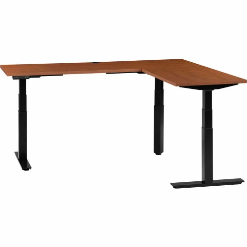 Upgrade your workspace with the Interion® L-Shaped Electric Height Adjustable Table. Easily reconfigurable, this table fits into corners and awkward spaces, making it ideal for a variety of corporate, home office, and school settings. Its sturdy, minimal steel frame design allows for more leg room and maneuverability, with convenient height adjustability that adapts to both sitting and standing positions. Plus, the additional tabletop space is perfect for those who use multiple monitors. 5 Year Limited Warranty. BIFMA and UL/cUL certified. Desk Measures: 60″ W x 24″ D. Return Measures: 36″W x 24″D. Overall Dimensions: 60″W x 60″D.