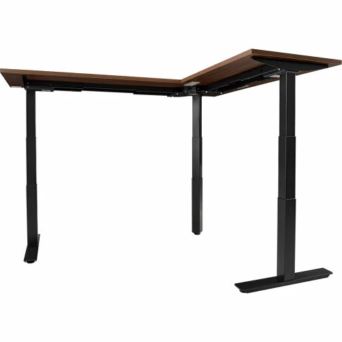 Interion By Global Industrial Interion® L-Shaped Electric Height Adjustable Desk, 60"W x 24"D, Walnut W/ Black Base