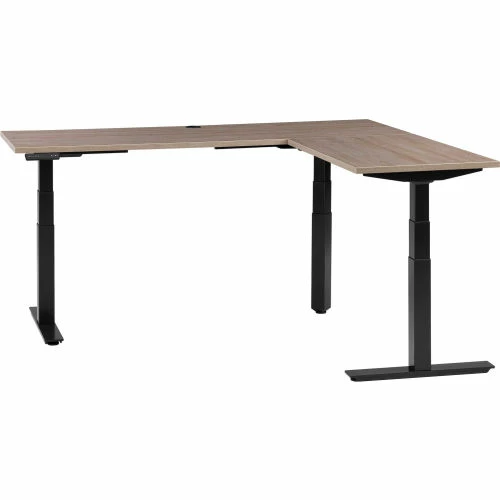 Interion By Global Industrial Interion® L-Shaped Electric Height Adjustable Desk, 72"W x 24"D, Gray W/ Black Base