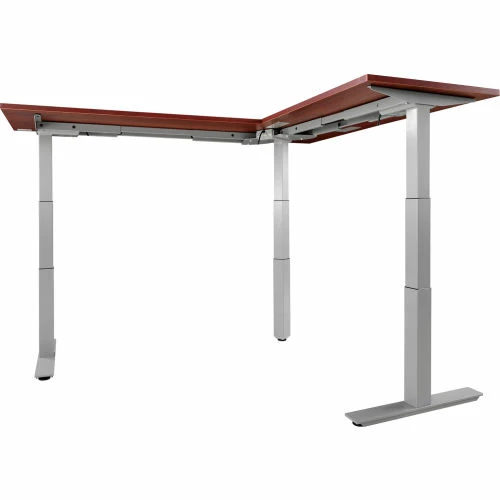 Interion By Global Industrial Interion® L-Shaped Electric Height Adjustable Desk, 72"W x 24"D, Mahogany W/ Gray Base