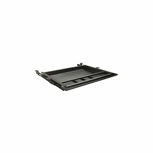 Black plastic slide-out drawer includes several compartments for pencils, paper clips, notepads, and more. Easily attaches to Desk Shell. Measures 23-1/8″W x 17″D x 2″H. Easy assembly. 1 Year Limited Warranty.