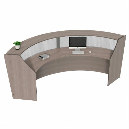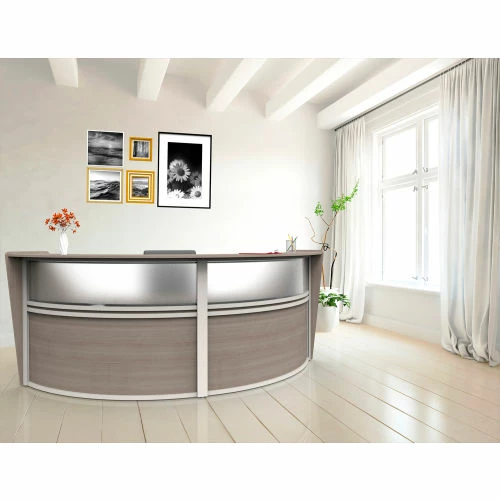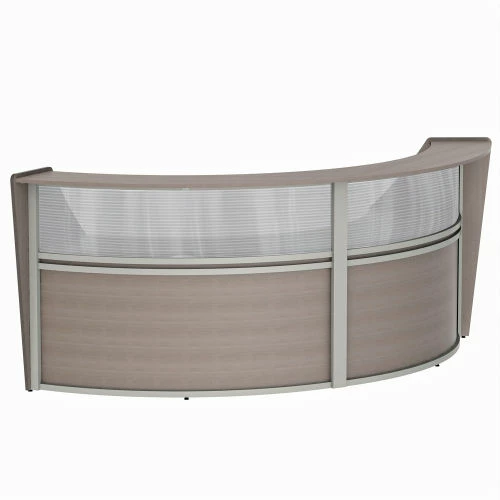 Linea Italia Curved Modern Reception Desk with Counter, 2 Units, 124"W x 49"D x 46"H, Ash