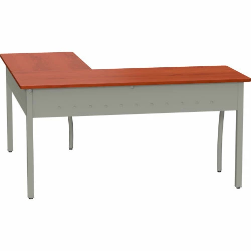Trento Collection L-Shaped Desk, Corner Desk, L-Desk, Modern Computer Desk, Large L Shaped Desk. Desk dimensions: 60″W x 60″D x 30″H. Easy to assembly, strong metal gray frame and thermofused laminated wood top in Cherry finish. L-Desk, L-Shaped Desk, Corner Desk, Writting desk, Executive Desk for Home or Office, SOHO, School. Easy to Assemble in less than 9 minutes, no tools required, leveling glides for uneven flooring. Expertly shrink wrapped and packed to avoid damage during transit.