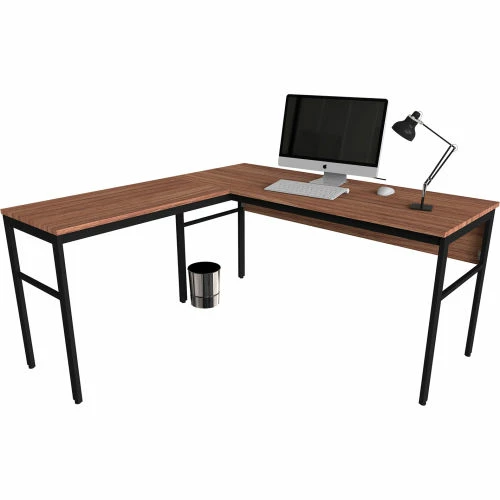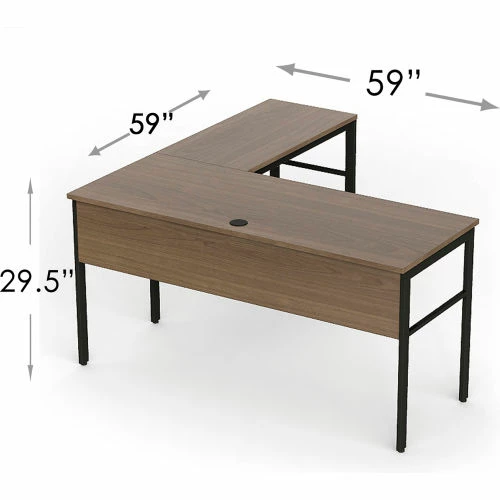 Urban Collection Executive L-Shaped Desk, Corner Desk, L-Desk, Modern Computer Desk, Large L Shaped Desk. This L-Desk has strong metal black frame and thermofused laminated wood top in Walnut finish. Desk dimensions: 60″W x 60″D x 30″H. L-Desk, L-Shaped Desk, Corner Desk, Large Computer desk, Writting desk, Computer Table, Executive Desk for Home or Office, SOHO, School. Easy to Assembly, no tools required, leveling glides for uneven flooring. Expertly shrink wrapped and packed to avoid damage during transit.. The laminate surface is anti scratch and stain resistant an easy to clean with a wet cloth. It can holds up to 300 lb of weight, load capacity is a must in all home/office workspaces!.