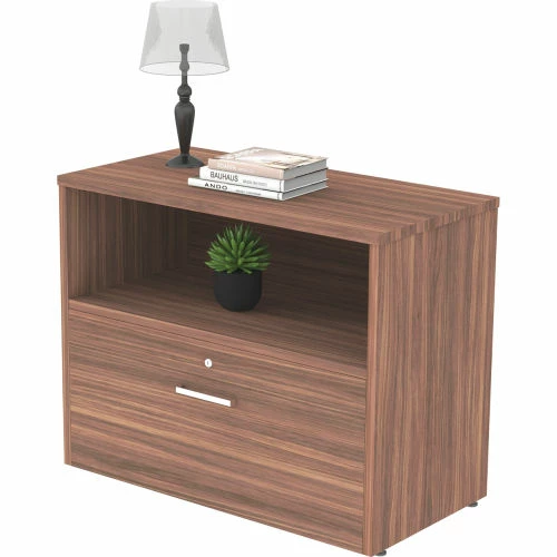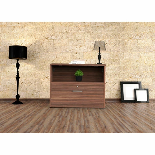 Urban Collection Storage Credenza with Drawer, One Locking Drawer, One Storage Shelf. This storage credenza is made with strong thermofused laminated wood in Natural Walnut finish, it has one locking drawer and one open shelf. Credenza Dimensions: 30″W x 16″ D x 24″H. Storage Credenza file cabinet with locking drawer is ideal for organize files, books, office supplies and decor in Home or Office, SOHO, School. Easy to Assembly, no tools required. Expertly shrink wrapped and packed to avoid damage during transit. The laminate surface is scratch and stain resistant and easy to clean with a wet cloth.