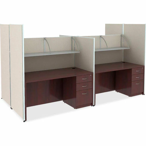 Office furniture offers a high-quality laminate construction with metal to metal cam lock connections. Design includes 3mm PVC edges and adjustable floor guides. Furniture has predrilled holes with metal inserts for easy attachment. Brackets are designed for L-shape configurations and bridge returns.