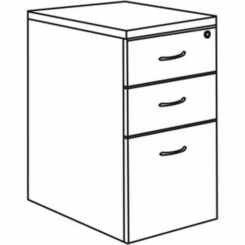 Freestanding, mobile pedestal is part of Lorell 69000 Series Laminate Furniture with high-quality laminate construction. Pedestal offers a box/box/file design. The file drawer includes hangrails and holds letter-size and legal-size hanging files. Mahogany laminate top is 1″ thick for durability. Pedestal rolls easily on four 1-1/2″ dual-wheel casters. Design also includes 96mm metal drawer pulls with a silver brush finish and 3mm PVC edges.