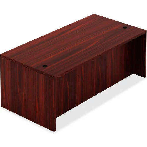 Rectangular desk is part of the Lorell® Chateau Series that offers contemporary laminate office furniture with a durable design and multiple configuration options. The 1-1/2″ thick top features a reeded edge detail for a distinct look. Design also includes full modesty panel for privacy and high-quality, Mahogany laminate surface for durability. Two grommet holes in the top allow easy cord routing. Add Lorell® Essentials Series pedestals (sold separately) to expand your storage options.