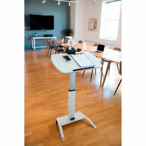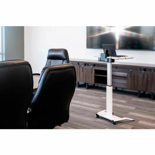 For those looking for a space-efficient, flexible, and versatile presentation tool and/or mobile workstation, Luxor has combined two proven products into one amazing solution. The Pneumatic Height-Adjustable Lectern with KwikBoost EdgePower® Charging Station will become an indispensable addition to any classroom, medical clinic, office, and more. Now you can work or present anywhere you like, standing or sitting, while enjoying convenient, cord-free power for your laptop, tablet, and phone.