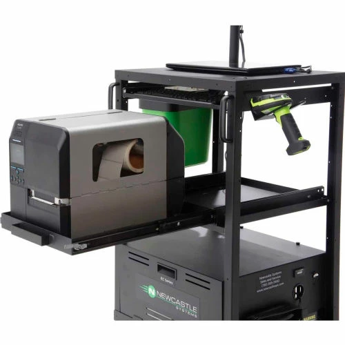 Boost convenience and mobility in your workplace with the Newcastle Systems EC Series EcoCart Mobile Powered Laptop Cart. This entry-level EcoCart mobile powered workstation is designed to expedite productivity while eliminating unnecessary movement, touches, and transportation wastes. Ideal for large shipping warehouses, this unit can help improve dock to stock cycle times in receiving and on-time shipments. Suitably made for powering a laptop, barcode printer, and scanner for 8+ hours at a time. At the end of use, simply plug your cart into a standard wall outlet to recharge. This mobile powered cart cannot charge and use at the same time.