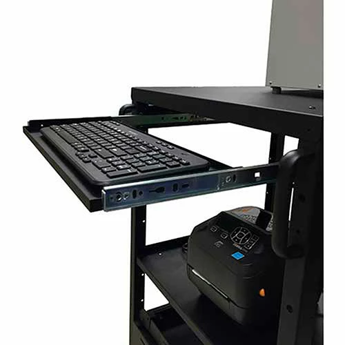 Provides sturdy, easy-slide support for your standard keyboard, enabling extra space on cart’s top shelf. This optional keyboard tray is compatible with Newcastle Systems EC Series Workstations Only.
