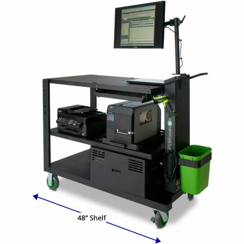 Boost convenience and mobility in your workplace with the Newcastle Systems PC Series Mobile Powered Workstation. This PC Series cart is a mobile platform that not only provides the same flexible mobility as our lighter carts, but allows for expanded possibilities with room for a laser printer, supplies, inventory and more. With a 30″ tabletop, it can actually serve as a mobile workspace that has room for your laptop and your paperwork too.