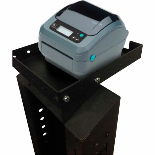 This optional small printer shelf is for use with Newcastle Systems NB & PC Series Workstations Only. Attaches to workstation mast and securely holds small barcode printer, enabling extra space on cart’s top shelf.