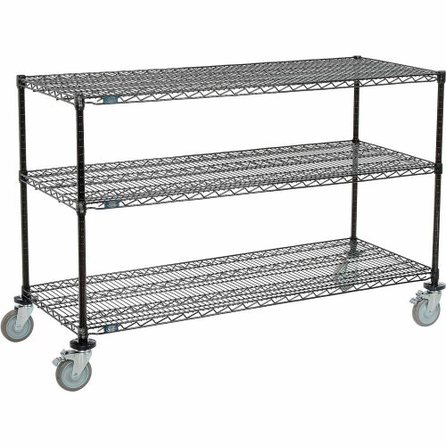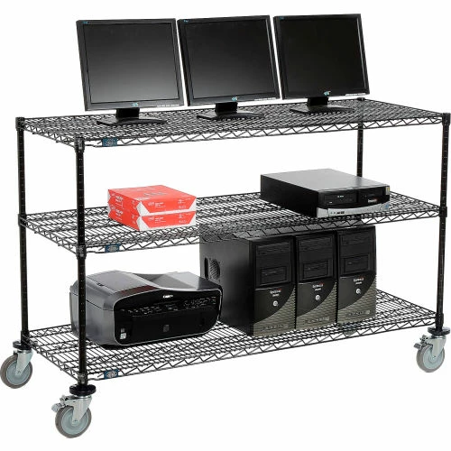 Nexel™ 3-Shelf Mobile Wire Computer LAN Workstation, 60"W x 24"D x 40"H, Black