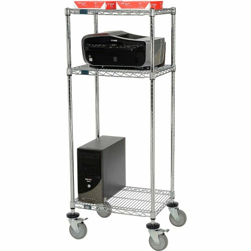 Nexel 3-Shelf Mobile Wire Printer Stand, 24"W x 18"D x 59"H, Chrome