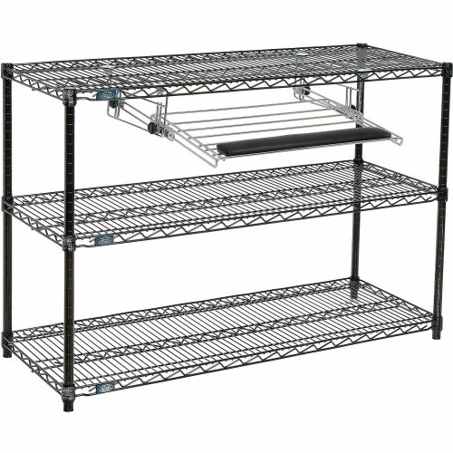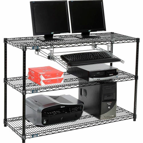 Nexel™ 3-Shelf Wire Computer LAN Workstation with Keyboard Tray, 48"W x 18"D x 34"H, Black