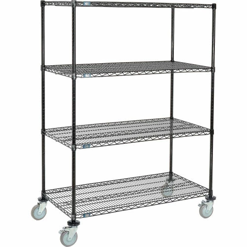 Nexel™ 4-Shelf Mobile Wire Computer LAN Workstation, 48"W x 24"D x 69"H, Black