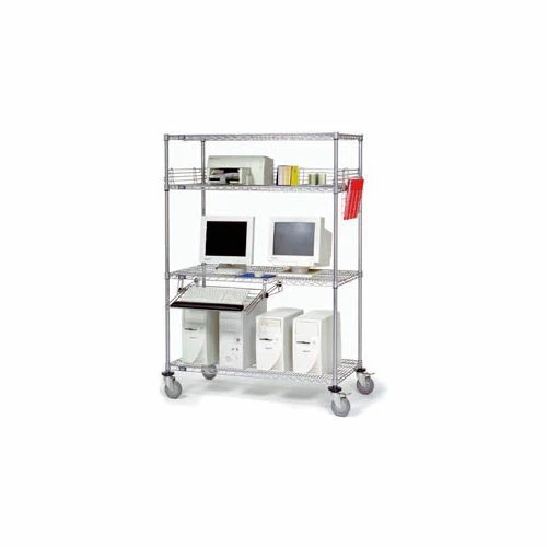 Nexel 4-Shelf Mobile Wire Computer LAN Workstation w/Keyboard Tray, 60"W x 24"D x 69"H, Chrome