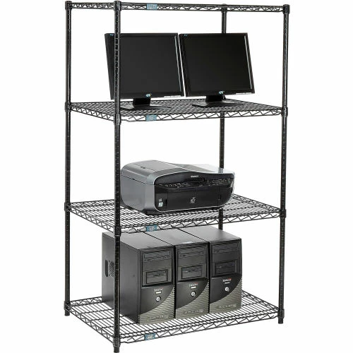 Nexel™ 4-Shelf Wire Computer LAN Workstation, 36"W x 24"D x 63"H, Black