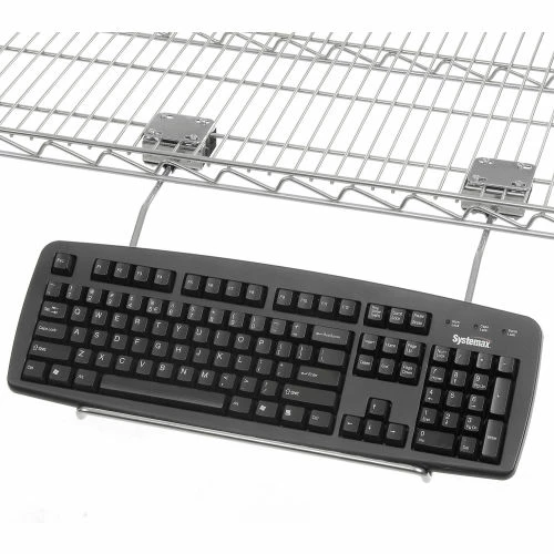 Wire Keyboard Holder supports your keyboard on top shelves for easy viewing. 12-3/4″W x 13-1/2″D overall.