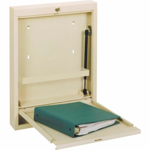 Omnimed slim line wall desks are constructed of powder coated steel in Beige or light Grey for a durable and easy to clean finish. Designed to provide a compact and efficient work area where space is limited. This unit’s front panel smoothly opens and closes using an adjustable gas cylinder mechanism. Equipped with flat key lock security, slim line desks can accommodate charts up to 2-1/2 inches thick. Available in self or manual close units.