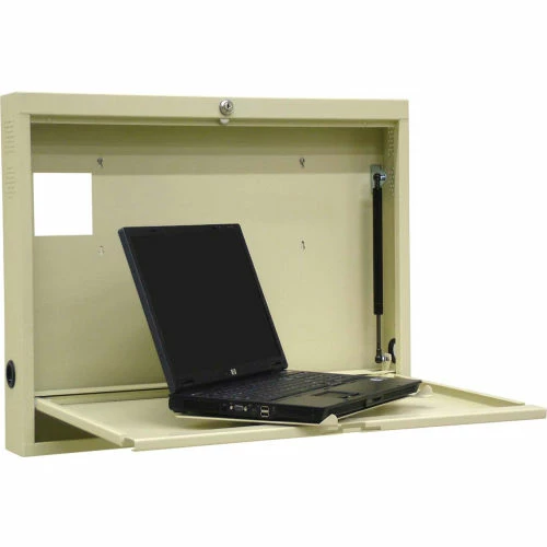 The Omnimed Turntable Laptop Wall Desk is constructed of heavy gauge steel that is powder coated for a durable and easy to clean finish. Designed to adapt to user position, the laptop turntable plate rotates 360 degrees and locks in a front facing position. The front panel smoothly opens and closes using an adjustable gas cylinder and has a flat key lock for security. There are openings for heat dissipation on the side of each desk and multiple entry ports for all power and cabling needs. An optional 12 CMF fan (291498)may also be used to increase heat dispersal. The unit accommodates all laptop sizes and measures 23-3/4 inches high by 30 inches wide and 4 inches deep. Available in beige or light grey, it is warranted for 5 years with 1 year on the gas spring and lock.