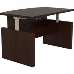 Safco® Aberdeen Height-Adjustable Desk, Bow Front w/Base, 42"D x 72"W, Mocha