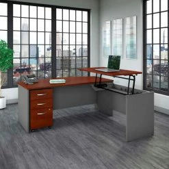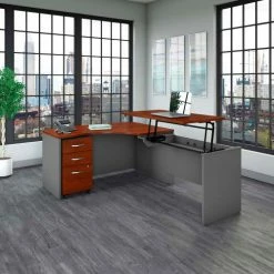 Bestar® Height Adjustable Table – Electric – 60" x 30" x 28" – 45"H Northern Maple