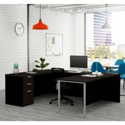 Bestar® U-Desk – Deep Gray and Black – Pro-Concept Plus Series