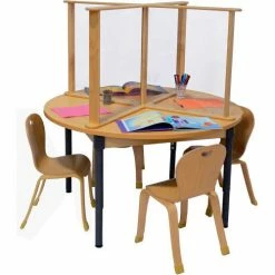 Wood Designs™ 48" Dia. Height Adjustable 4 Person Laminate Table with 45"W x 24"H Sneeze Guard