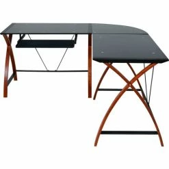 Comfort Products OneSpace 50-JN15K05 Glass and Wood Computer Desk with Pullout Keyboard Tray, Black