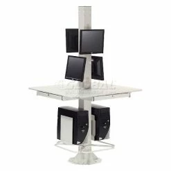 Global Industrial 81"H Stationary Floor Mount Orbit Computer Station Power Outlets Beige