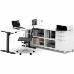 Bestar® L-Desk and Electric Height Adjustable Table – White – Pro-Linea Series
