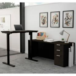 Bestar® L-Desk Including Electric Height Adjustable Table – Dark Chocolate – Embassy Series