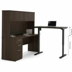 Bestar® L-Desk w/ Hutch and Electric Height Adjustable Table – Dark Chocolate – Embassy Series
