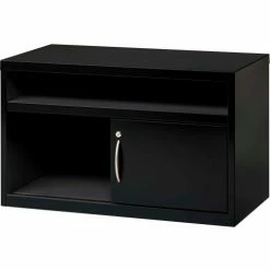 Bestar® L Desk with Sliding-Door Hutch – 71" – Bark Grey – Pro-Linea Series