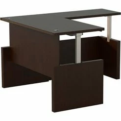 Safco® Aberdeen Height-Adjustable Desk, Straight Front w/Return, 84"D x 72"W, Mocha